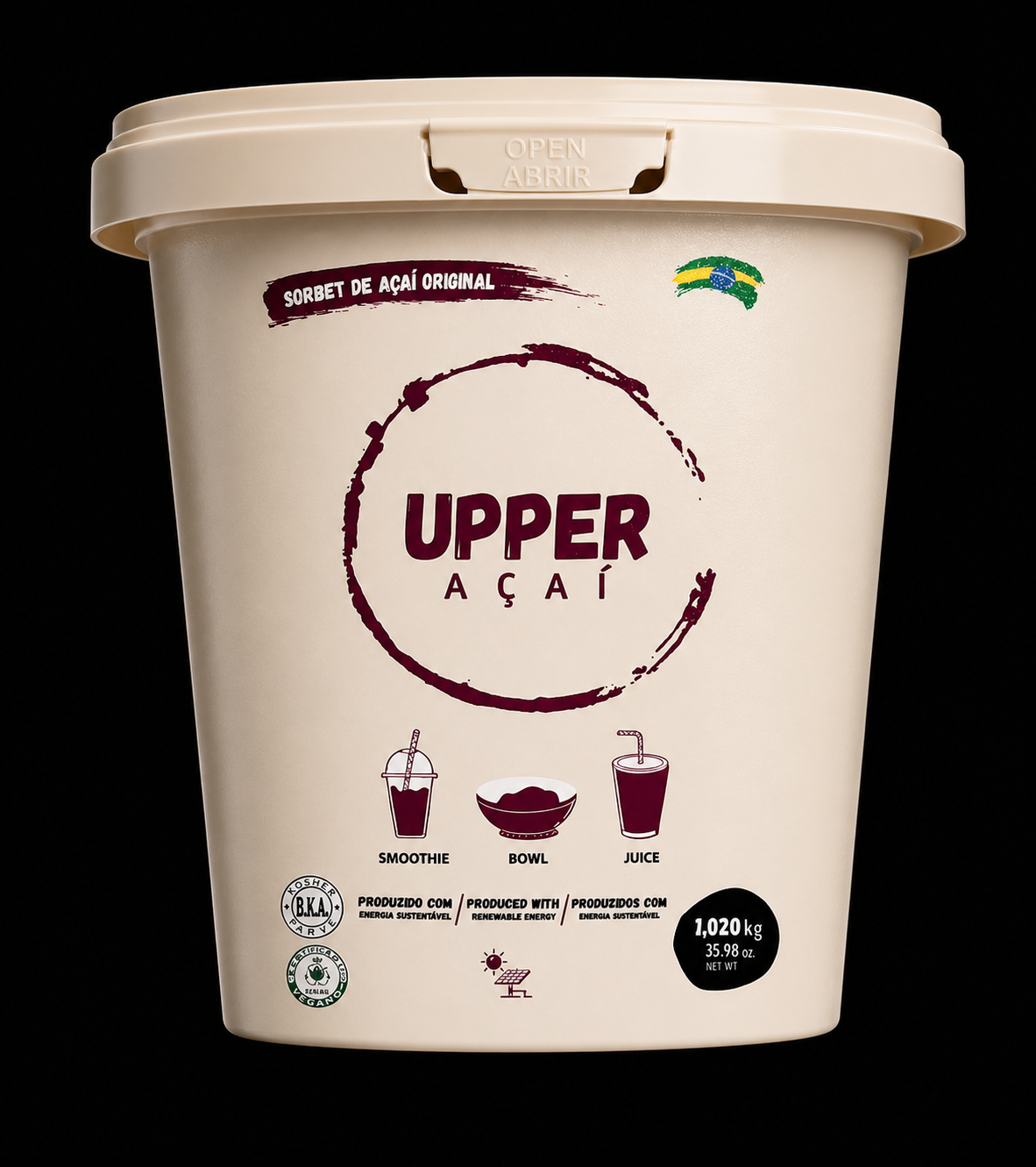 Sorbet açaí avec banane et guaraná en pot de 200 g + 20 g de granola. Produit original do Brasil. Carton de 24 unités.